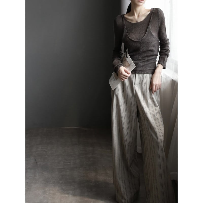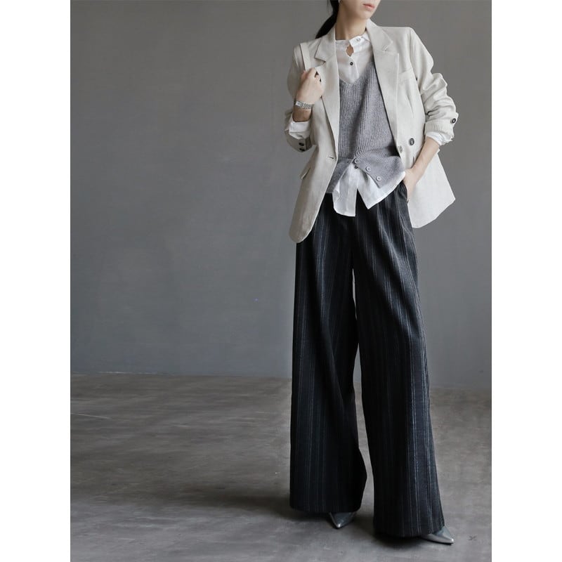 ストライプ柄ワイドパンツ ■商品説明 すっきりとした縦ラインで美脚効果の高いワイドパンツ。 ハイウエストデザインがスタイルアップを叶え、流れるようなシルエットが洗練された印象に。 幅広いコーディネートに合わせやすい万能アイテムです。 ■カラー ライトグレー ダークグレー ■サイズ(cm) S ウエスト64/ヒップ106/着丈106 M ウエスト68/ヒップ110/着丈107 L ウエスト72/ヒップ114/着丈108 ※採寸には1〜4cmほどの誤差がある場合がございます。 ※モデル身長168cm 体重46kg 着用サイズS ■素材 ポリエステル スパンデックス レーヨン ☆インスタで他のアイテムもチェック! https://www.instagram.com/_riglow_official_/ ☆riglowで今人気のアイテムはこれ! https://www.riglow.net/categories/3447320 ☆Shop top pageはこちらから https://www.riglow.net/ ----------------------------------------------------------------------------------- 【お支払い方法について】 ・クレジットカード決済(手数料がかからずオススメです。) ・キャリア決済(docomo/au/Softbank/Y!mobile 手数料300円) ・PayIDあと払い(手数料350円) ※お支払い方法の種類が変更になる可能性がございます。 【お届けについて】 riglowではお客様からご注文をいただき、1点ずつ取り寄せさせていただいております。 そのためご注文(ご入金)いただいてから10日〜3週間前後で発送致します。ご了承ください。 【注意事項】 ・タイミングによっては 商品在庫切れにより注文キャンセルとさせていただくこともございますので、予めご了承くださいませ。 ・こちらは輸入品となります。日本製とは検品基準が異なる為、新品未使用品でもごくわずかな汚れや傷がある場合もございます。 ・商品の色味は、お手持ちのスマートフォンの画面によって実物と若干異なる場合がございます。 ・イメージ違いやサイズ交換等、お客さまご都合による交換、返品は対応出来かねます。ご了承ください。 ※こちらに重要事項を詳しく記載しております。ご購入前にこちらをお読みください。 https://www.riglow.net/about