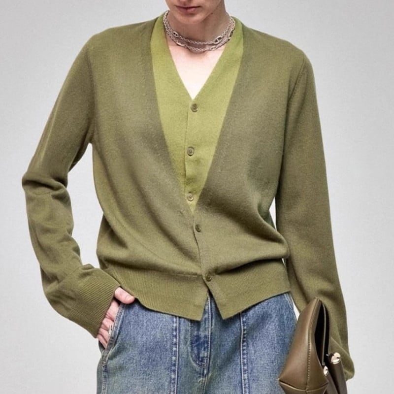 レイヤード風Vネックカーディガン ■商品説明 重ね着したようなレイヤードデザインが魅力のVネックカーディガン。 すっきりとしたVネックラインと、重ね着風デザインが洗練された印象に。 シンプルながらもデザインにこだわった一着、普段のカジュアルスタイルからきれいめなコーディネートまで幅広く活躍します。 ■カラー グリーン グレー ブラック ■サイズ(cm) S 着丈52/バスト101/肩幅41/袖丈57 M 着丈53/バスト103/肩幅42/袖丈58 L 着丈54/バスト105/肩幅43/袖丈59 XL 着丈55/バスト107/肩幅44/袖丈60 ※採寸には1〜4cmほどの誤差がある場合がございます。 ☆インスタで他のアイテムもチェック! https://www.instagram.com/_riglow_official_/ ☆riglowで今人気のアイテムはこれ! https://www.riglow.net/categories/3447320 ☆Shop top pageはこちらから https://www.riglow.net/ ----------------------------------------------------------------------------------- 【お支払い方法について】 ・クレジットカード決済(手数料がかからずオススメです。) ・キャリア決済(docomo/au/Softbank/Y!mobile 手数料300円) ・PayIDあと払い(手数料350円) ※お支払い方法の種類が変更になる可能性がございます。 【お届けについて】 riglowではお客様からご注文をいただき、1点ずつ取り寄せさせていただいております。 そのためご注文(ご入金)いただいてから10日〜3週間前後で発送致します。ご了承ください。 【注意事項】 ・タイミングによっては 商品在庫切れにより注文キャンセルとさせていただくこともございますので、予めご了承くださいませ。 ・こちらは輸入品となります。日本製とは検品基準が異なる為、新品未使用品でもごくわずかな汚れや傷がある場合もございます。 ・商品の色味は、お手持ちのスマートフォンの画面によって実物と若干異なる場合がございます。 ・イメージ違いやサイズ交換等、お客さまご都合による交換、返品は対応出来かねます。ご了承ください。 ※こちらに重要事項を詳しく記載しております。ご購入前にこちらをお読みください。 https://www.riglow.net/about