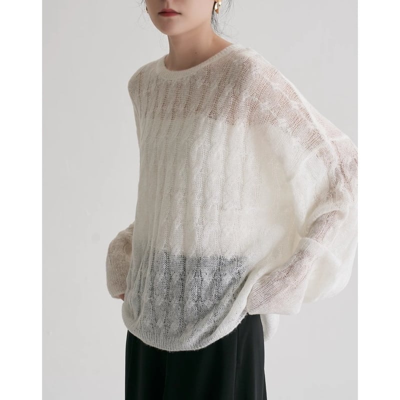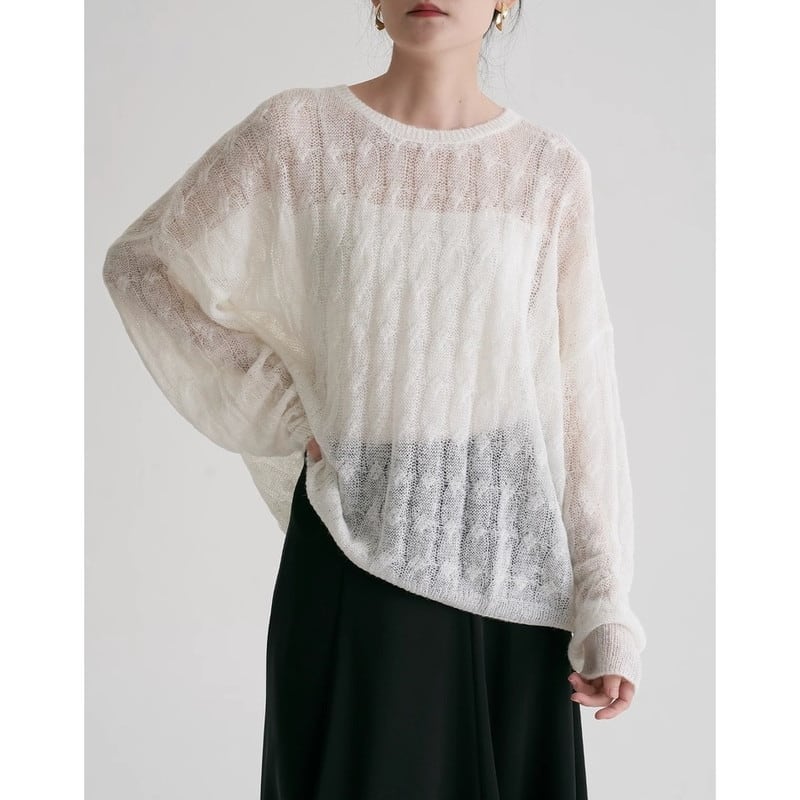 シアーケーブルニット ■商品説明 透け感のある柔らかなニットです。 重く見えがちなニットもシアーで抜け感のある着こなしに。 キャミソールなどとのレイヤードも楽しめる1枚です。 ■カラー ホワイト ■サイズ(cm) S 着丈54/バスト126/肩幅68/袖丈47 M 着丈55/バスト128/肩幅69/袖丈48 L 着丈56/バスト130/肩幅70/袖丈49 XL 着丈57/バスト132/肩幅71/袖丈50 ※採寸には1〜4cmほどの誤差がある場合がございます。 ☆インスタで他のアイテムもチェック! https://www.instagram.com/_riglow_official_/ ☆riglowで今人気のアイテムはこれ! https://www.riglow.net/categories/3447320 ☆Shop top pageはこちらから https://www.riglow.net/ ----------------------------------------------------------------------------------- 【お支払い方法について】 ・クレジットカード決済(手数料がかからずオススメです。) ・キャリア決済(docomo/au/Softbank/Y!mobile 手数料300円) ・PayIDあと払い(手数料350円) ※お支払い方法の種類が変更になる可能性がございます。 【お届けについて】 riglowではお客様からご注文をいただき、1点ずつ取り寄せさせていただいております。 そのためご注文(ご入金)いただいてから10日〜3週間前後で発送致します。ご了承ください。 【注意事項】 ・タイミングによっては 商品在庫切れにより注文キャンセルとさせていただくこともございますので、予めご了承くださいませ。 ・こちらは輸入品となります。日本製とは検品基準が異なる為、新品未使用品でもごくわずかな汚れや傷がある場合もございます。 ・商品の色味は、お手持ちのスマートフォンの画面によって実物と若干異なる場合がございます。 ・イメージ違いやサイズ交換等、お客さまご都合による交換、返品は対応出来かねます。ご了承ください。 ※こちらに重要事項を詳しく記載しております。ご購入前にこちらをお読みください。 https://www.riglow.net/about