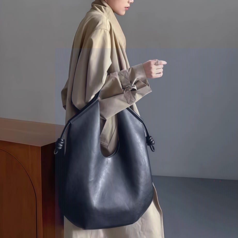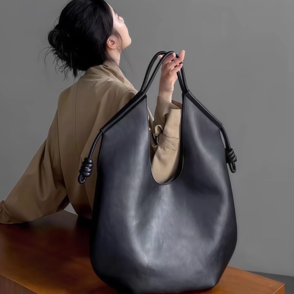 シンプルながらも洗練されたデザインが魅力のラウンドバッグ。