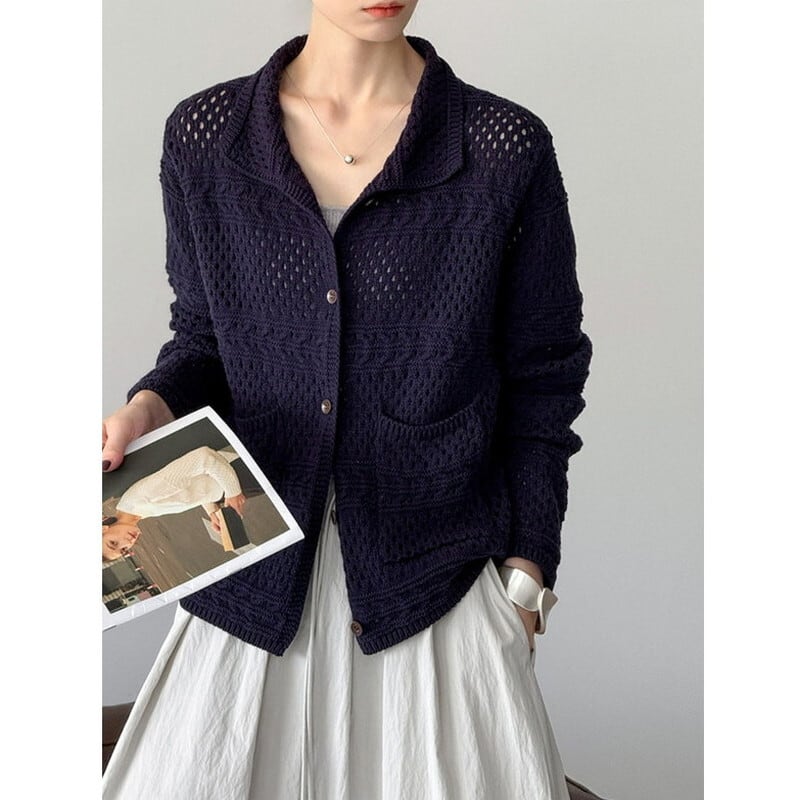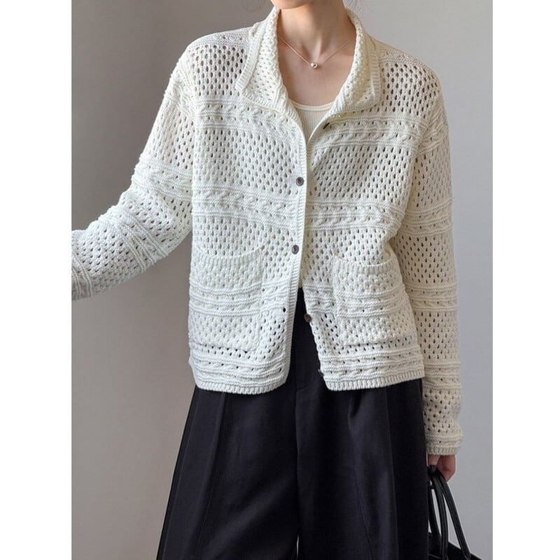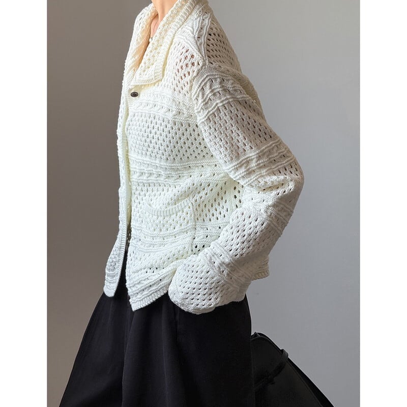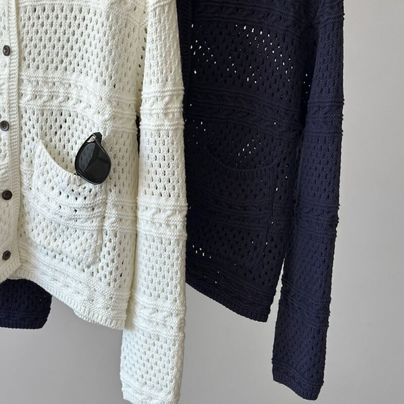 ニットながら透け感があるので季節の変わり目の羽織りとして活躍しやすいデザインです。
