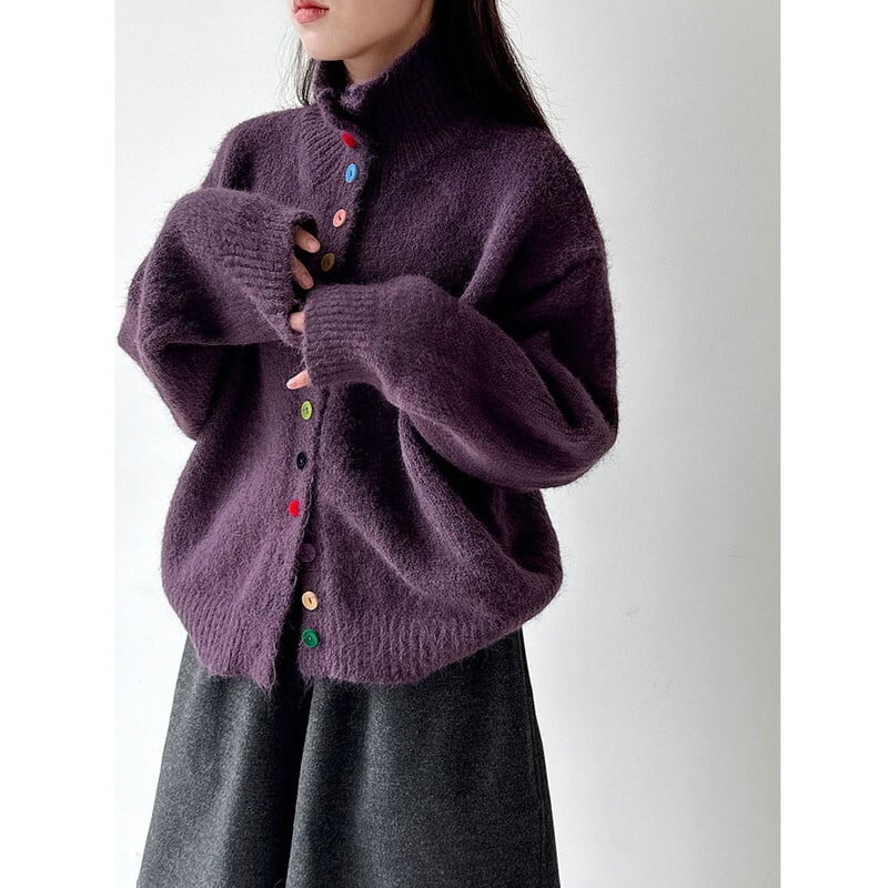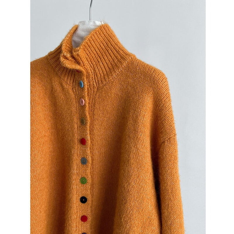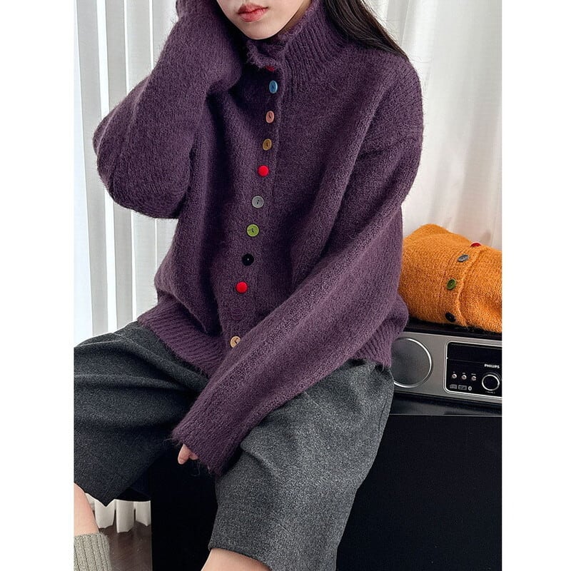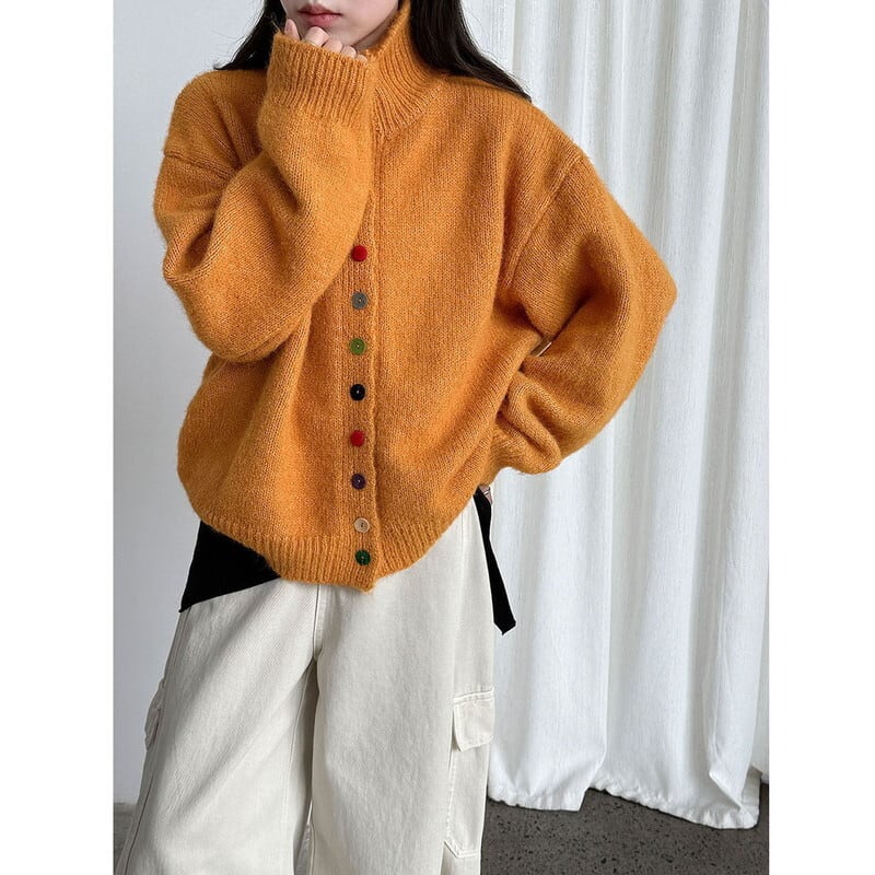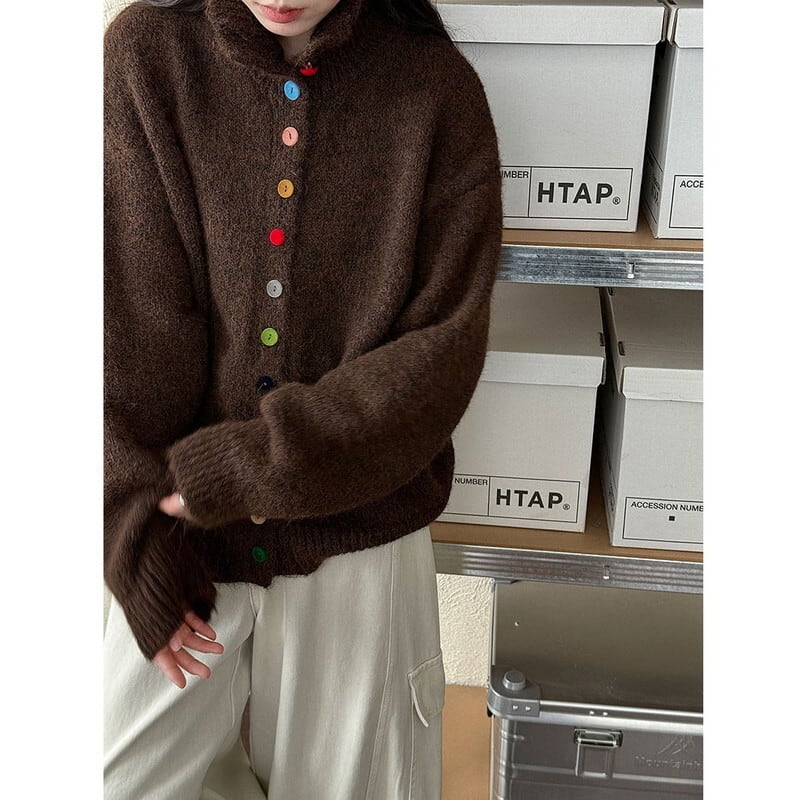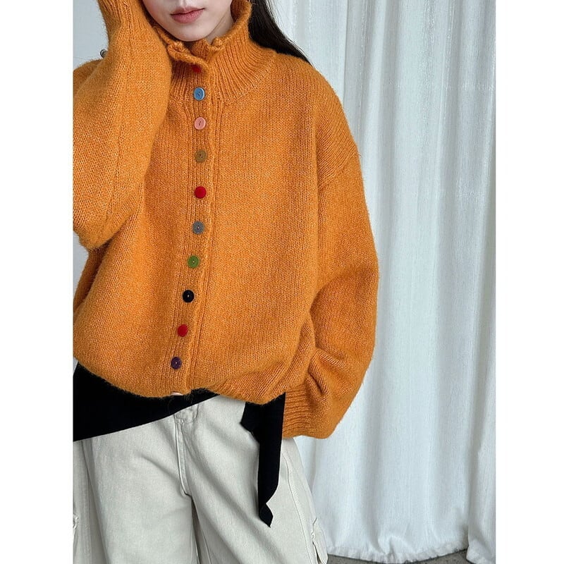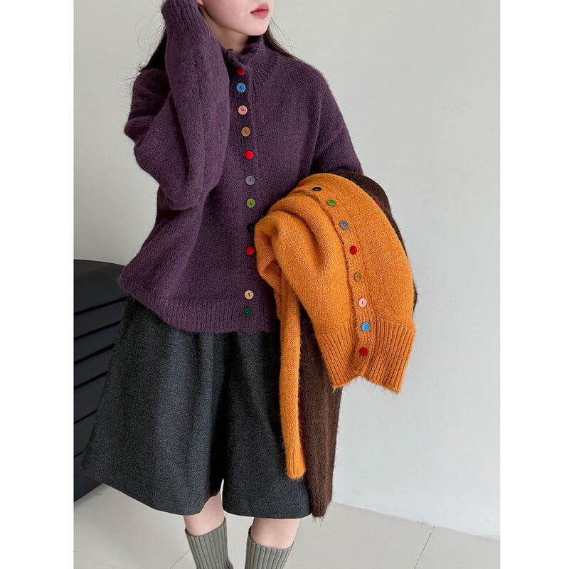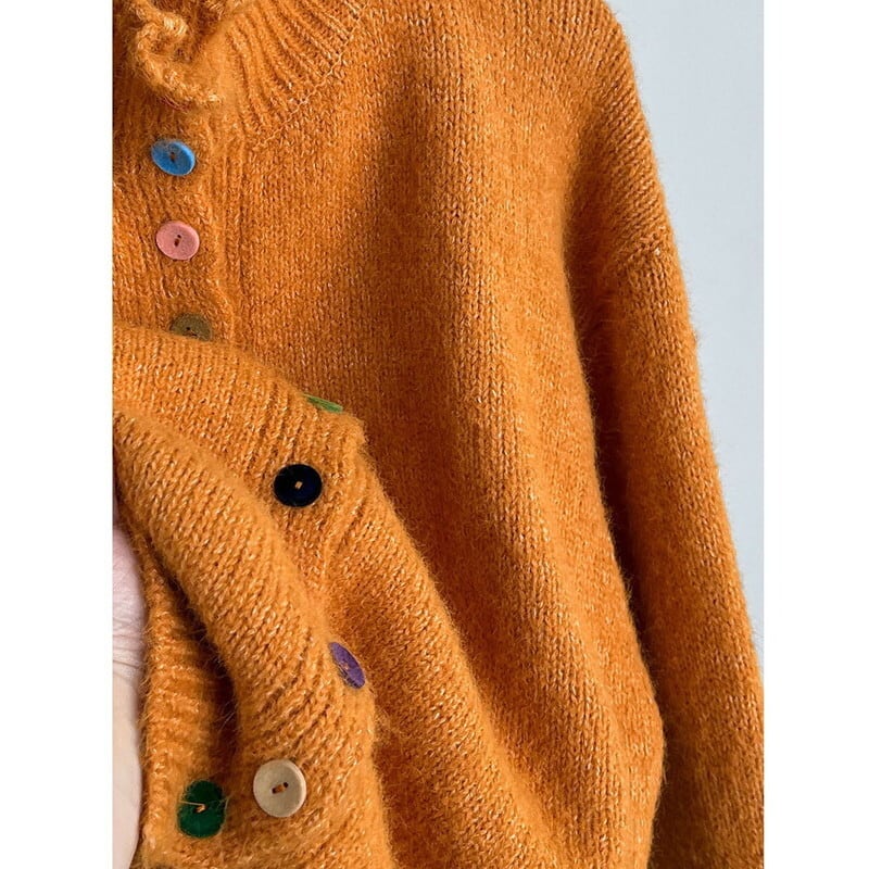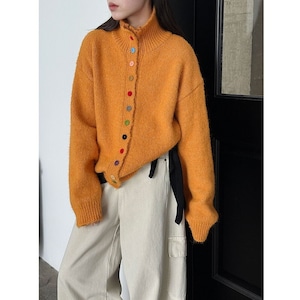 カラフルなボタンがアクセントになった遊び心あふれるニットカーディガンです。