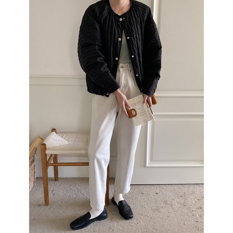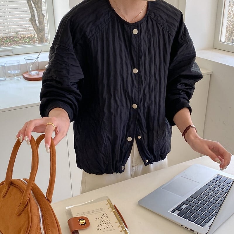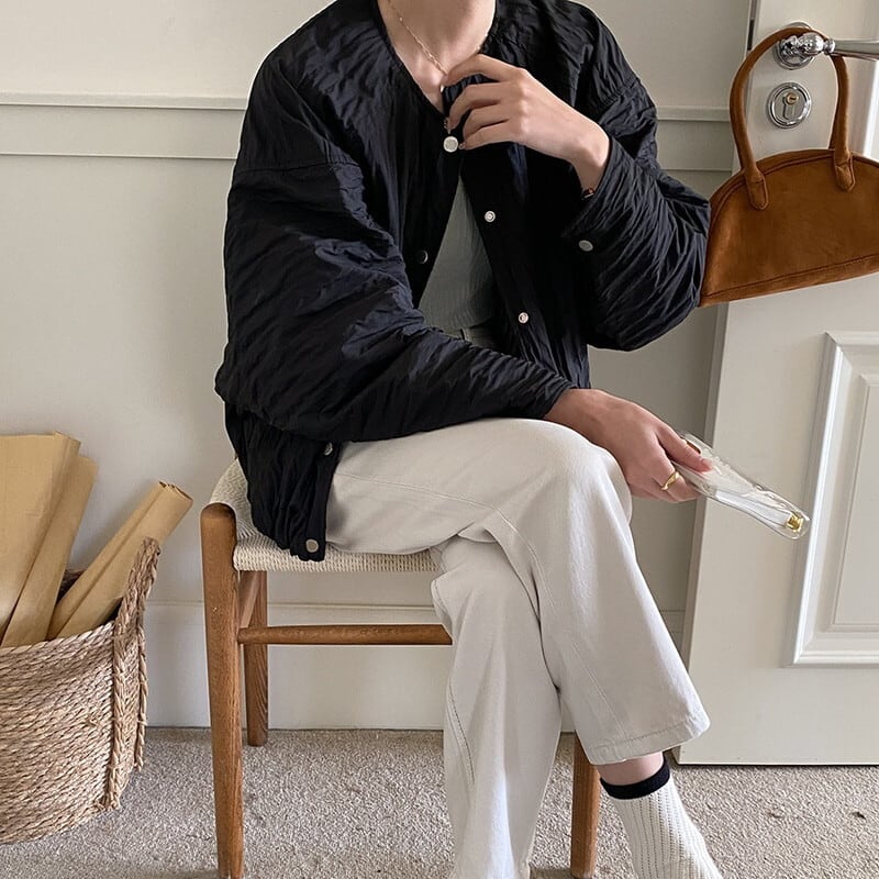 ノーカラーリンクルブルゾン ■商品説明 軽やかな素材感とニュアンスのあるリンクル加工が魅力のノーカラーブルゾンです。 すっきりとしたノーカラーデザインが顔まわりを上品に見せ、洗練された印象に仕上げてくれます。 ゆとりのあるシルエットで体型を自然にカバーしつつ、こなれた大人のスタイルを演出。 秋には1枚で、寒くなったらコートのインナーにも。 ■カラー オフホワイト ブラック ■サイズ(cm) M 着丈64/バスト110/肩幅57/袖丈49 L 着丈65/バスト116/肩幅58/袖丈50 ※採寸には1〜4cmほどの誤差がある場合がございます。 ■素材 ポリエステル ☆インスタで他のアイテムもチェック! https://www.instagram.com/_riglow_official_/ ☆riglowで今人気のアイテムはこれ! https://www.riglow.net/categories/3447320 ☆Shop top pageはこちらから https://www.riglow.net/ ----------------------------------------------------------------------------------- 【お支払い方法について】 ・クレジットカード決済(手数料がかからずオススメです。) ・キャリア決済(docomo/au/Softbank/Y!mobile 手数料300円) ・あと払い(手数料350円) ※お支払い方法の種類が変更になる可能性がございます。 【お届けについて】 riglowではお客様からご注文をいただき、1点ずつ取り寄せさせていただいております。 そのためご注文(ご入金)いただいてから10日〜3週間前後で発送致します。ご了承ください。 【注意事項】 ・タイミングによっては 商品在庫切れにより 注文キャンセルとさせていただくこともございますので、予めご了承くださいませ。 ・こちらは輸入品となります。日本製とは検品基準が異なる為、 新品未使用品でもごくわずかな汚れや傷がある場合もございます。 ・商品の色味は、お手持ちのスマートフォンの画面によって実物と若干異なる場合がございます。 ・イメージ違いやサイズ交換等、お客さまご都合による交換、返品は対応出来かねます。ご了承ください。 ※こちらに重要事項を詳しく記載しております。ご購入前にこちらをお読みください。 https://www.riglow.net/about