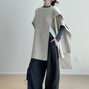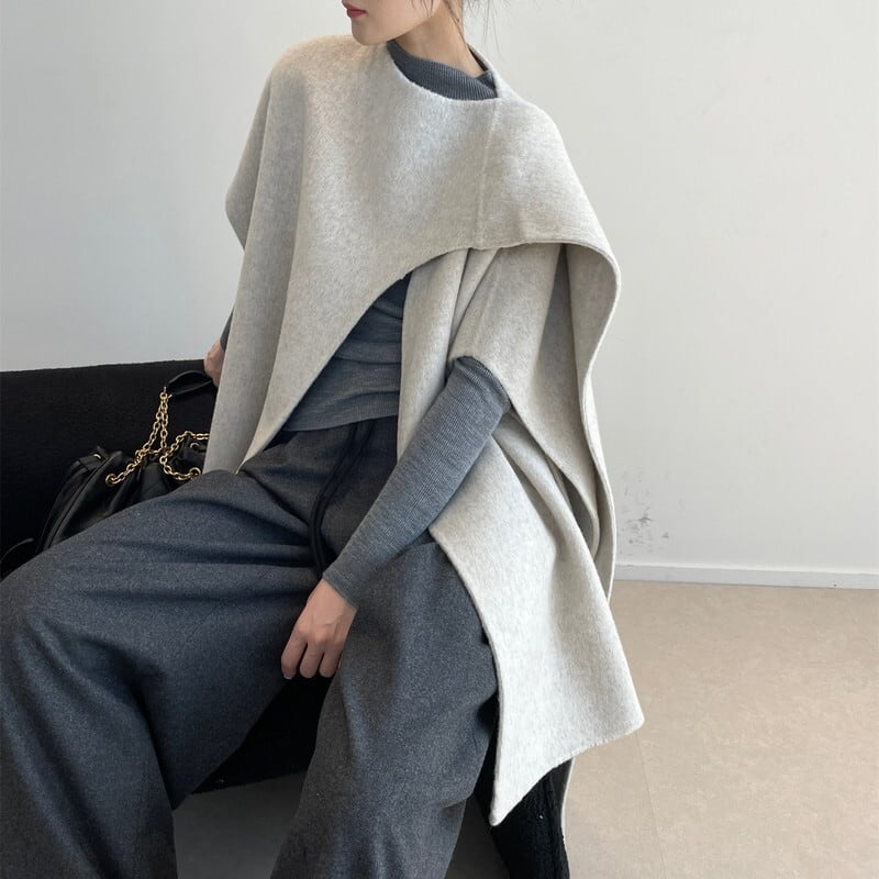 ゆるやかに広がるケープ風デザインで1枚でこなれ感のあるスタイリングを叶えます。