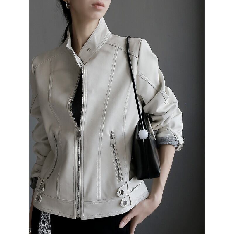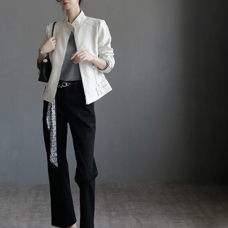 すっきりとしたラインが印象的なエコレザーライダースジャケットです。