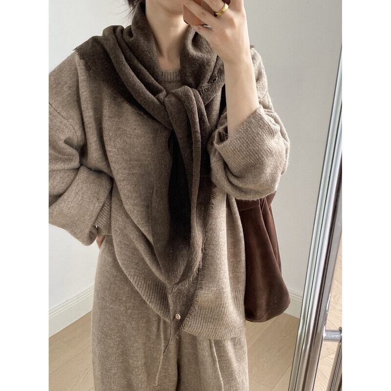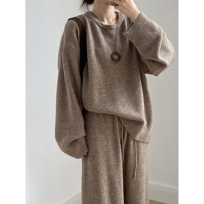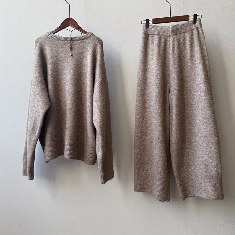 やわらかな雰囲気が魅力のニットプルオーバー&パンツセット。