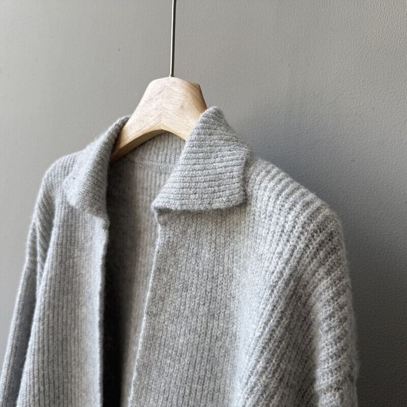 シンプルながらも存在感があり、セットで着るだけで洗練された印象です。