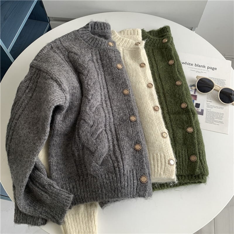 金ボタンケーブルニットカーディガン