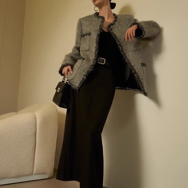 フリンジニットツイードジャケット ■商品説明 クラシカルで上品な雰囲気漂うノーカラージャケット。 フリンジライクな縁取りが華やかな印象をプラス。 カジュアルスタイルに取り入れたり、フォーマルなシーンにもあう使い勝手の良いジャケットです。 ■カラー グレー ■サイズ(cm) S :着丈64/バスト98/肩幅30/袖丈44 M:着丈65/バスト102/肩幅31/袖丈45 L :着丈66/バスト106/肩幅32/袖丈46 XL:着丈67/バスト110/肩幅33/袖丈47 ※採寸には1〜4cmほどの誤差がある場合がございます。 ■素材 ポリエステル ☆インスタで他のアイテムもチェック! https://www.instagram.com/_riglow_official_/ ☆riglowで今人気のアイテムはこれ! https://www.riglow.net/categories/3447320 ☆Shop top pageはこちらから https://www.riglow.net/ ----------------------------------------------------------------------------------- 【お支払い方法について】 ・クレジットカード決済(手数料がかからずオススメです。) ・キャリア決済(docomo/au/Softbank/Y!mobile 手数料300円) ・あと払い(手数料350円) ※お支払い方法の種類が変更になる可能性がございます。 【お届けについて】 riglowではお客様からご注文をいただき、1点ずつ取り寄せさせていただいております。 そのためご注文(ご入金)いただいてから10日〜3週間前後で発送致します。ご了承ください。 【注意事項】 ・タイミングによっては 商品在庫切れにより 注文キャンセルとさせていただくこともございますので、予めご了承くださいませ。 ・こちらは輸入品となります。日本製とは検品基準が異なる為、 新品未使用品でもごくわずかな汚れや傷がある場合もございます。 ・商品の色味は、お手持ちのスマートフォンの画面によって実物と若干異なる場合がございます。 ・イメージ違いやサイズ交換等、お客さまご都合による交換、返品は対応出来かねます。ご了承ください。 ※こちらに重要事項を詳しく記載しております。ご購入前にこちらをお読みください。 https://www.riglow.net/about