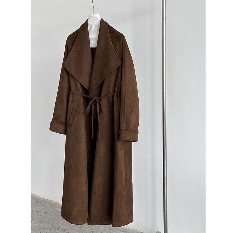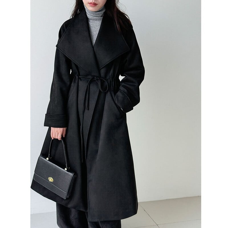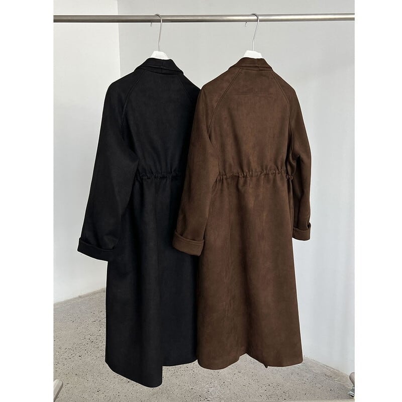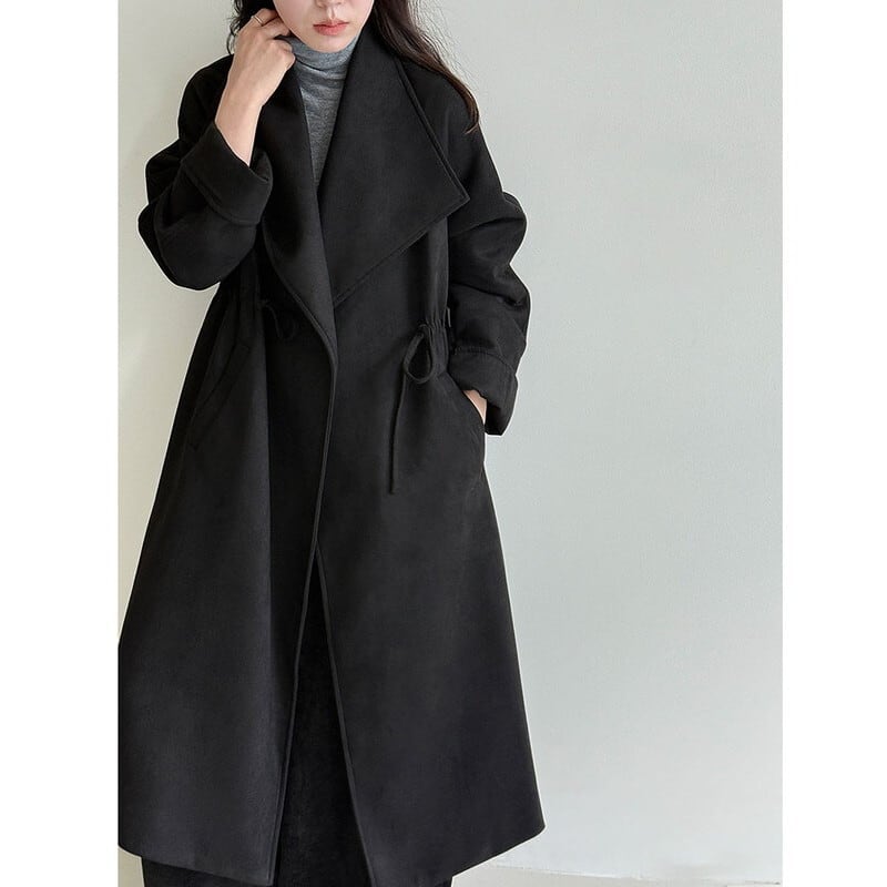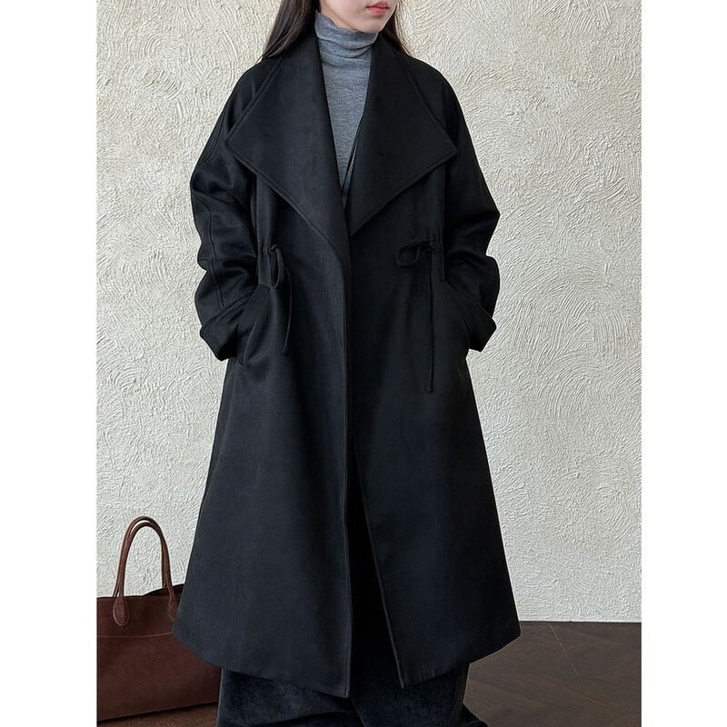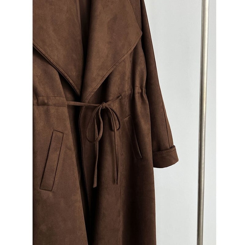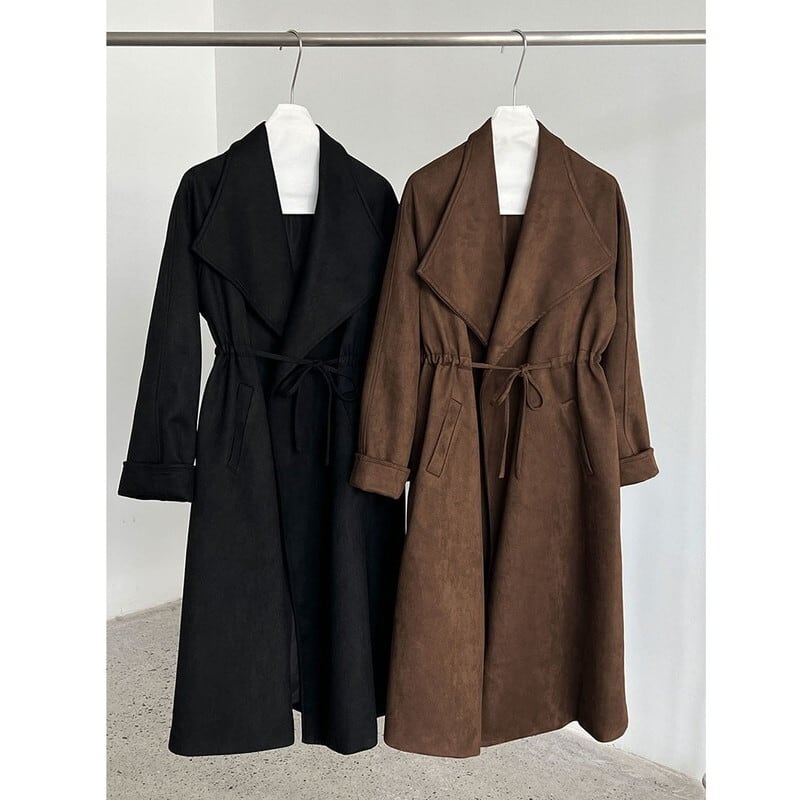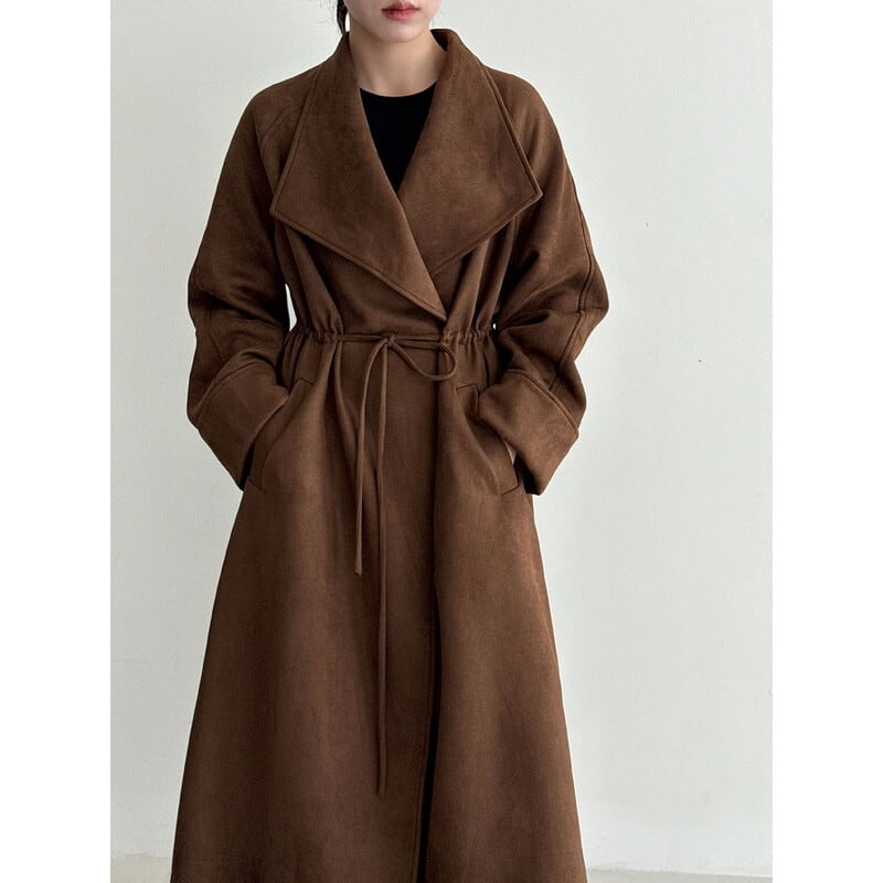 ウエストのドローストリングタイプのベルトで留めればより上品な雰囲気に。