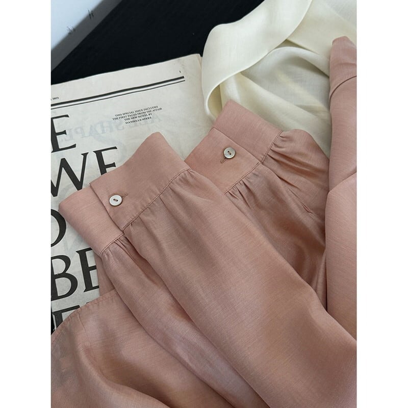 落ち感のある生地にゆとりのある身幅が気になるお腹周りを優しくぼかし、体型を拾いすぎない程よいボリューム感が身体のラインを華奢に見せてくれます。