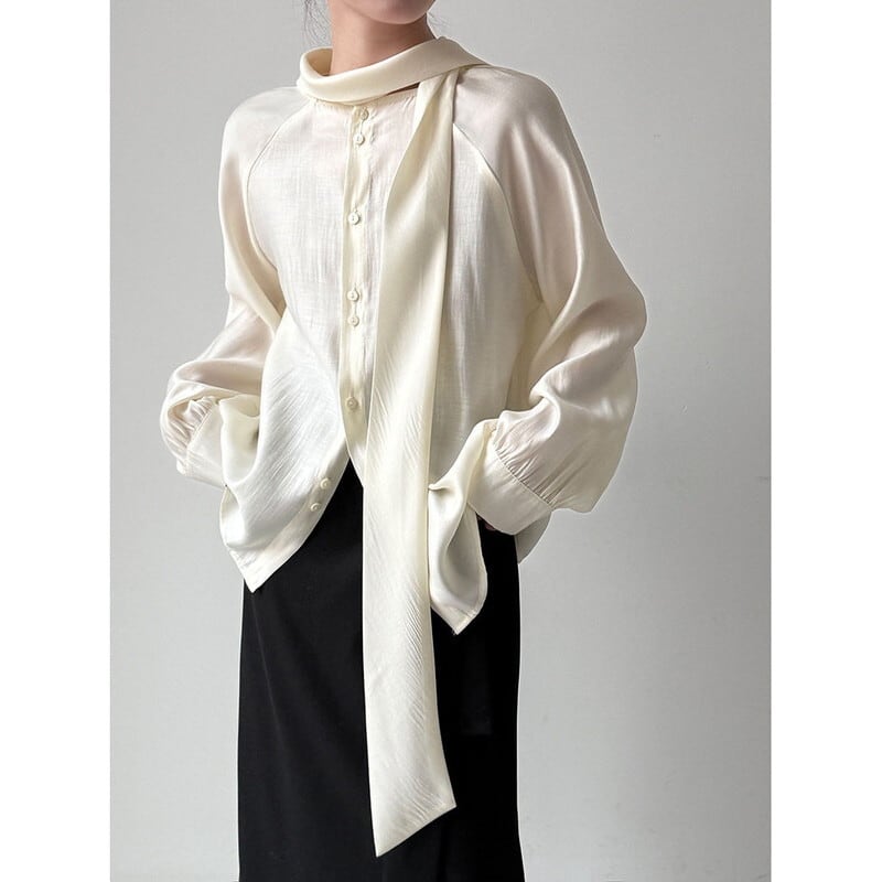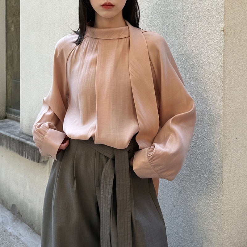 ボウタイドレープブラウス