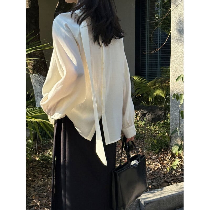 首元のボウタイが華やかさをアップ。洗練された大人の佇まいを叶えてくれるブラウスです。