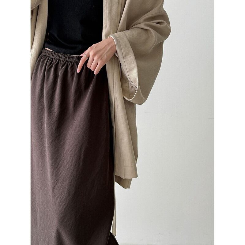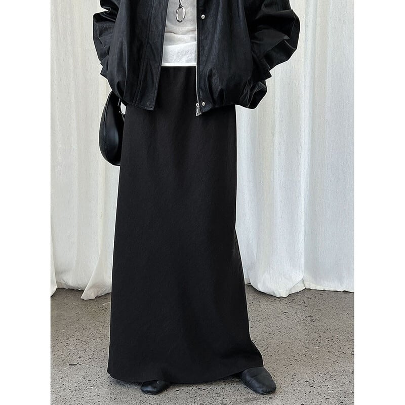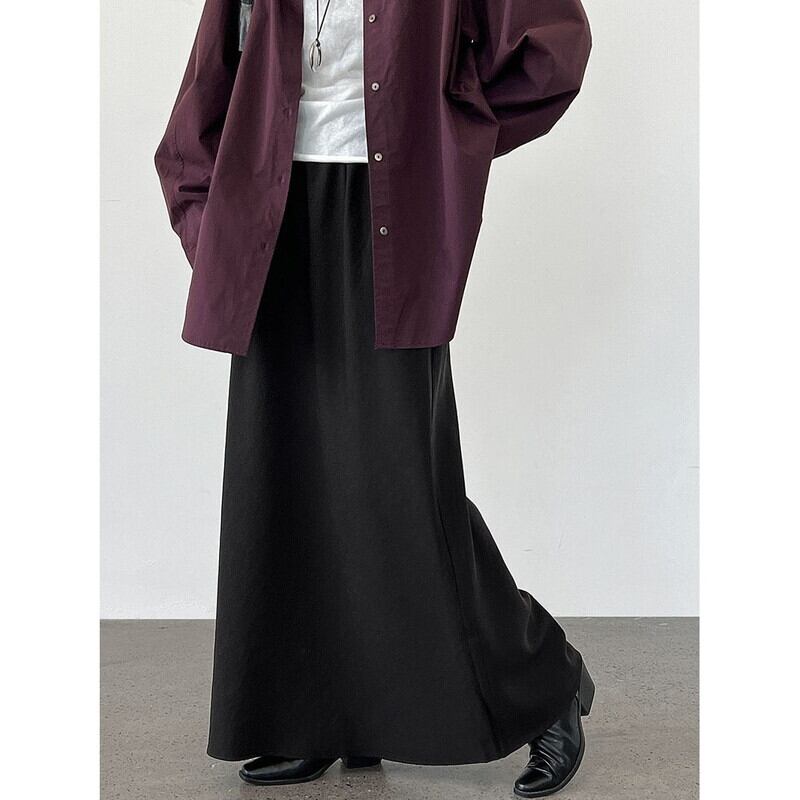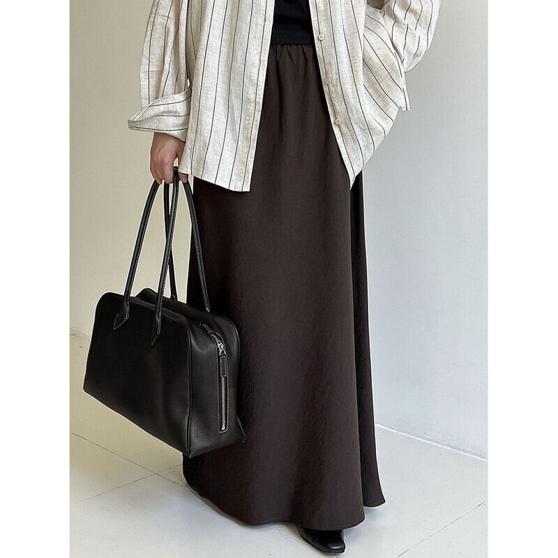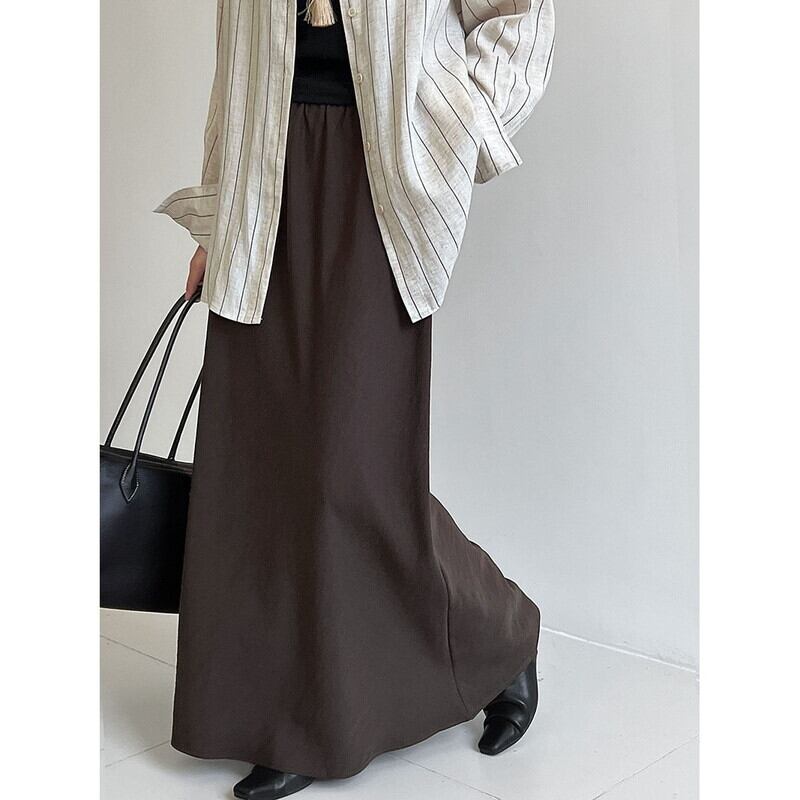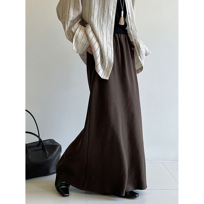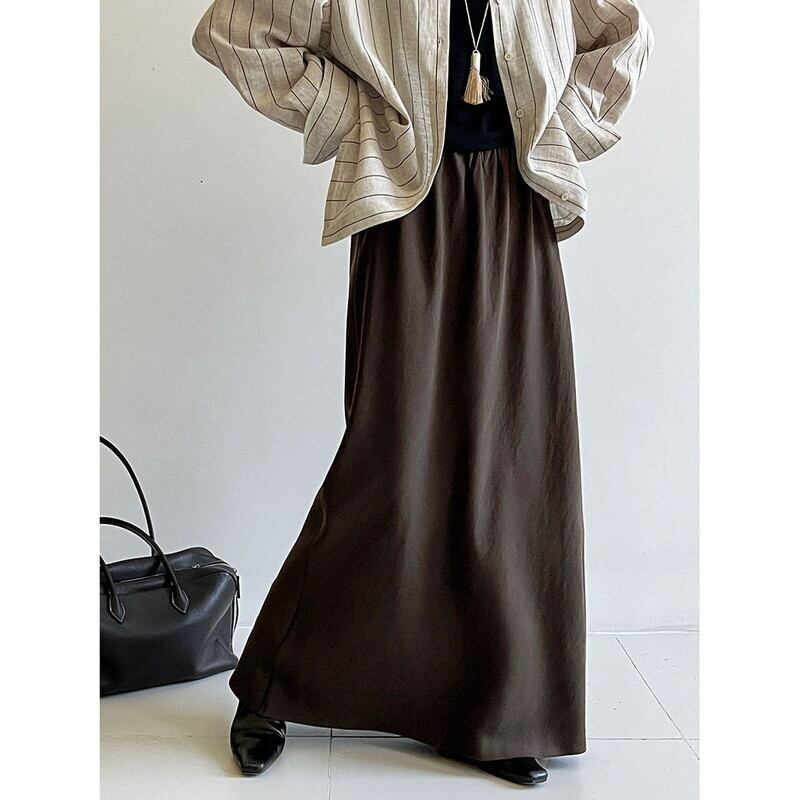 落ち感のあるマキシ丈が、大人の余裕を感じさせるスカートです。