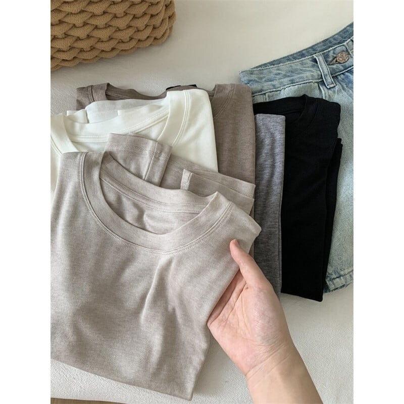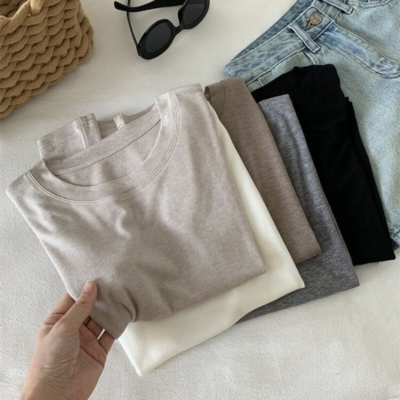 癖のないクルーネックの襟元で、どんなアイテムとも自然と馴染むデザイン。