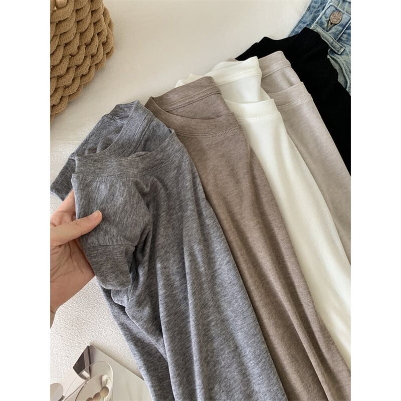 程よく体に沿いながらも肉感を拾わない滑らかな生地感が、上半身をコンパクトにまとめつつ女性らしいシルエットを強調します。