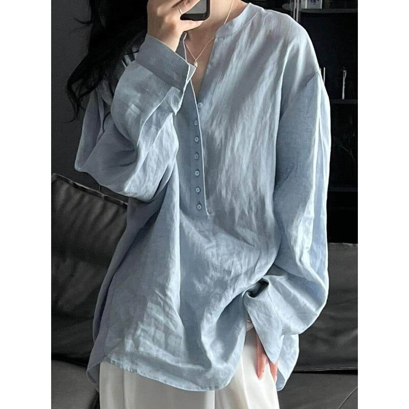 v-neck blue loose shirt 103005