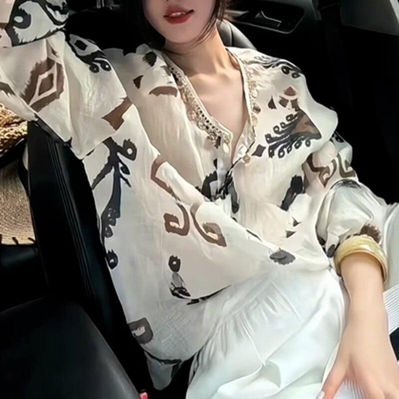 エスニックプリントブラウス