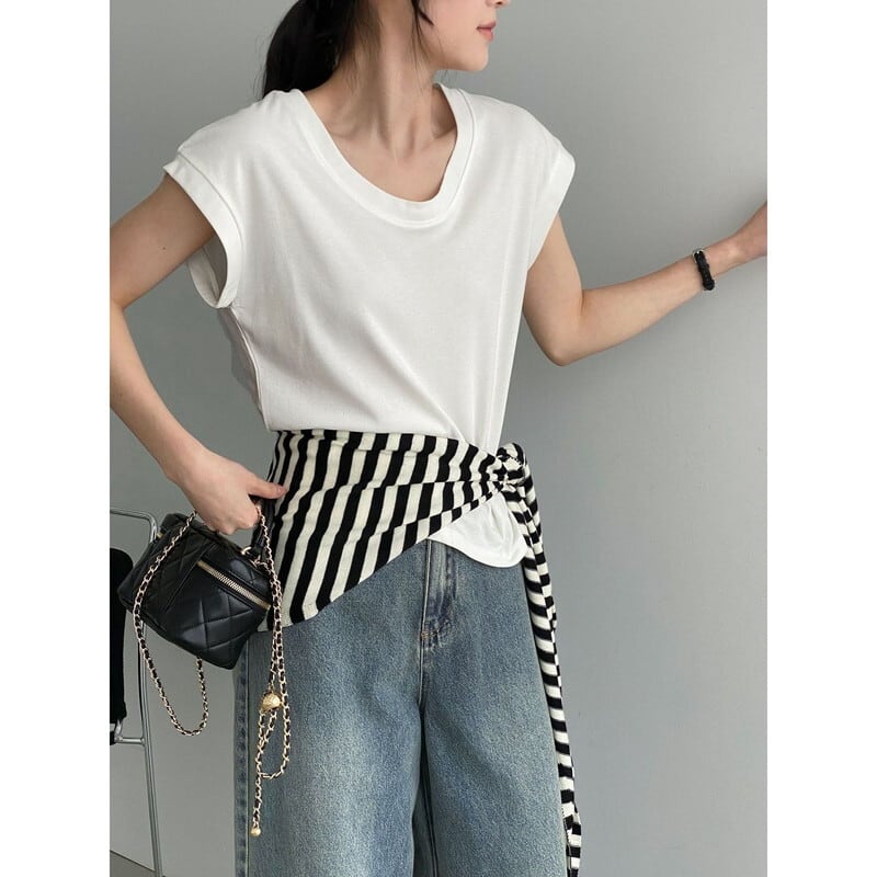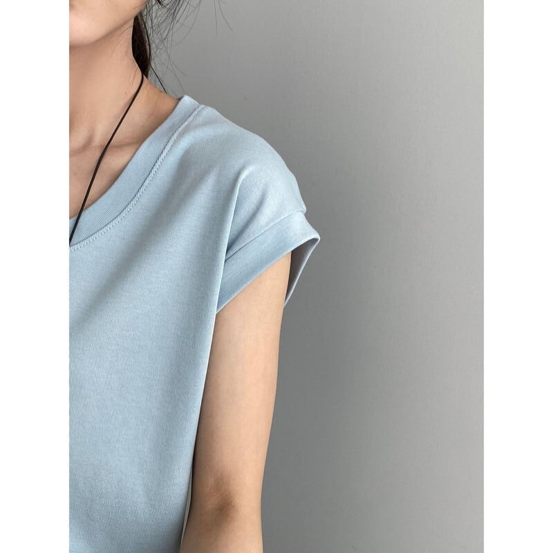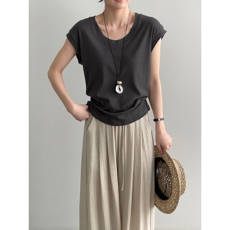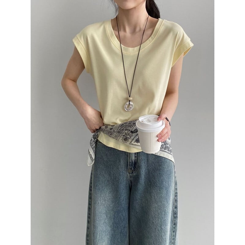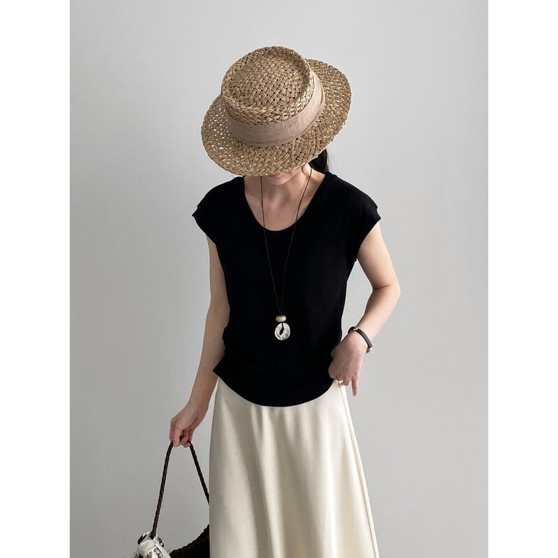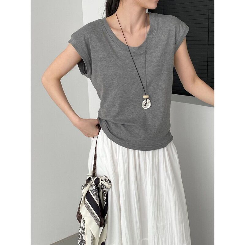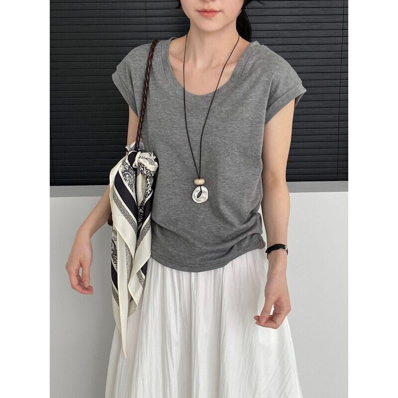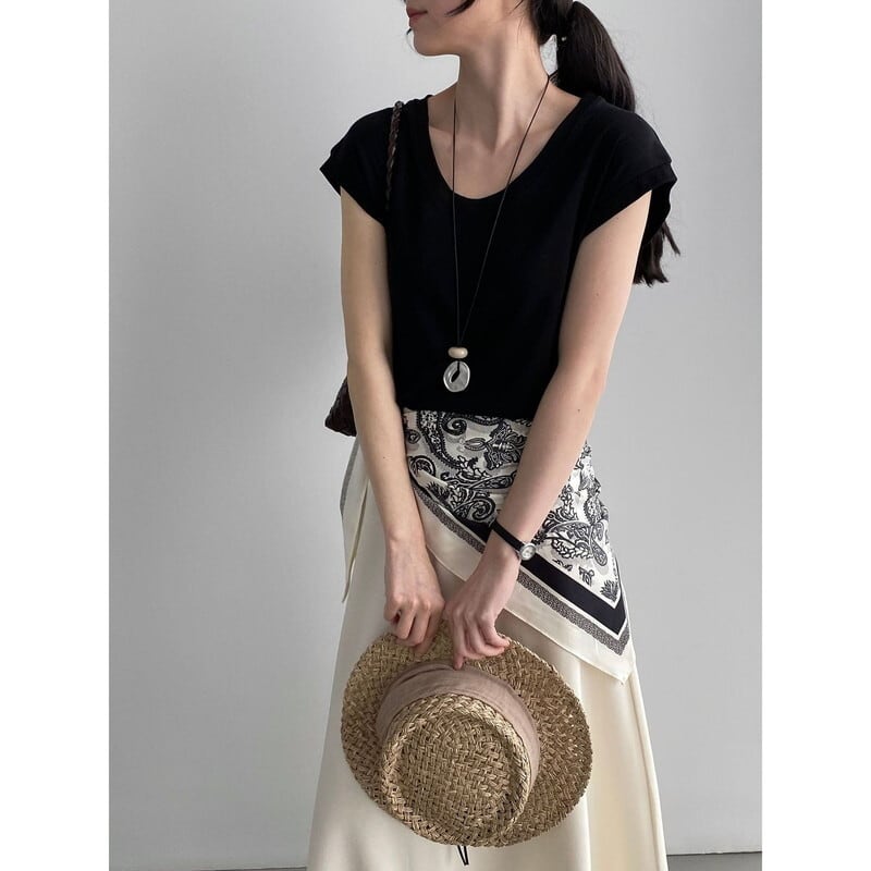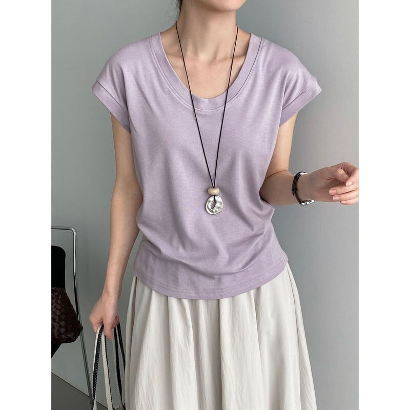 デコルテを綺麗に見せる程よく開いたUネックのベーシックで使い勝手のいいTシャツ。
