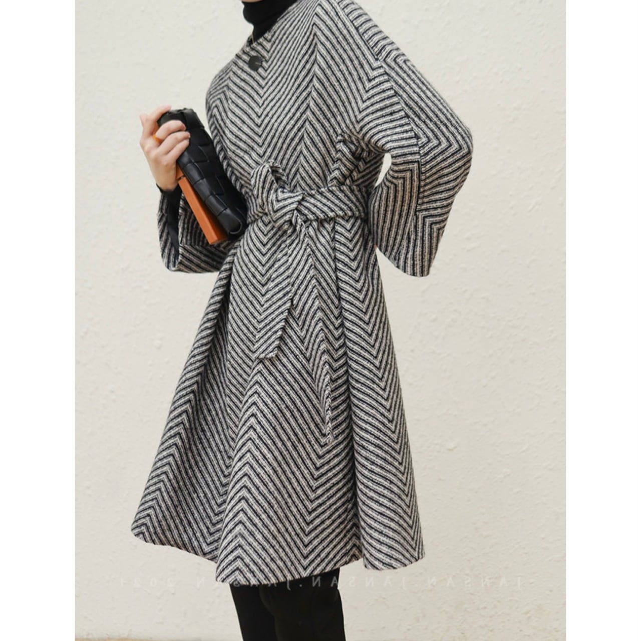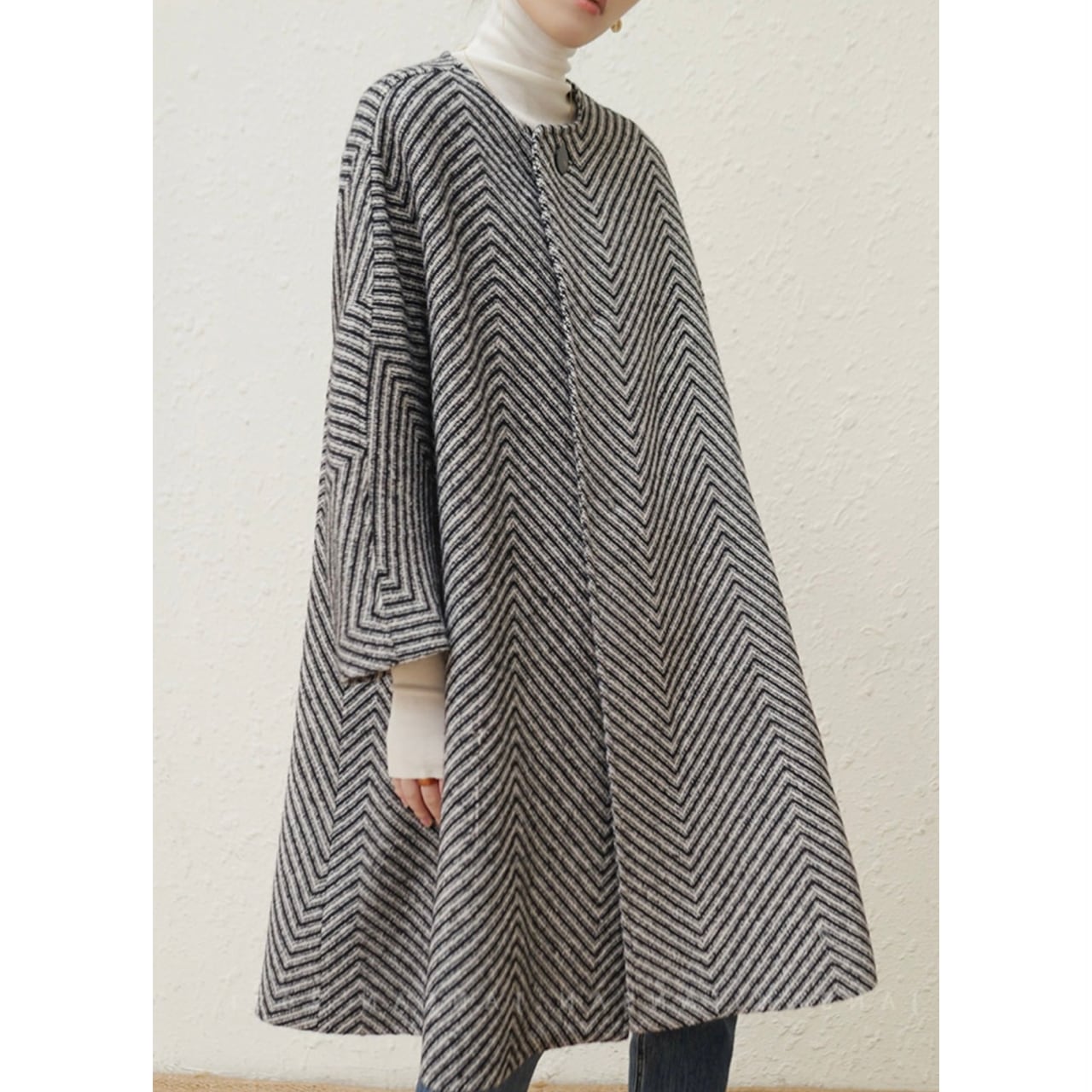 モノトーンの大きなヘリンボーン柄がインパクトのあるコート。
