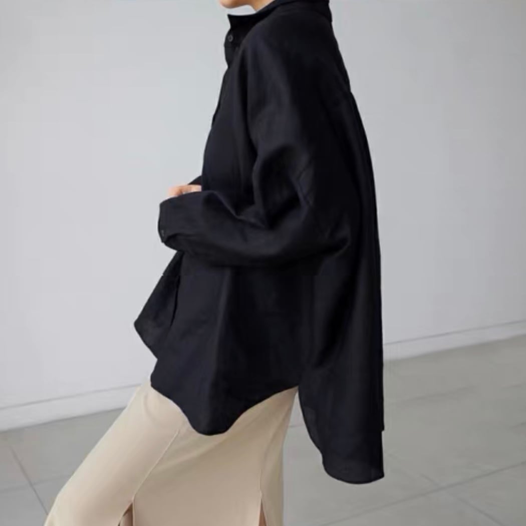 ドルマンスリーブとゆったりとしたシルエットが特徴のシャツ。程よいオーバーサイズで、さまざまな体型の方に似合いやすいアイテム。