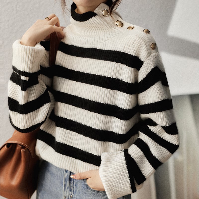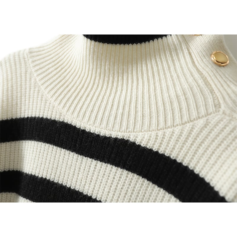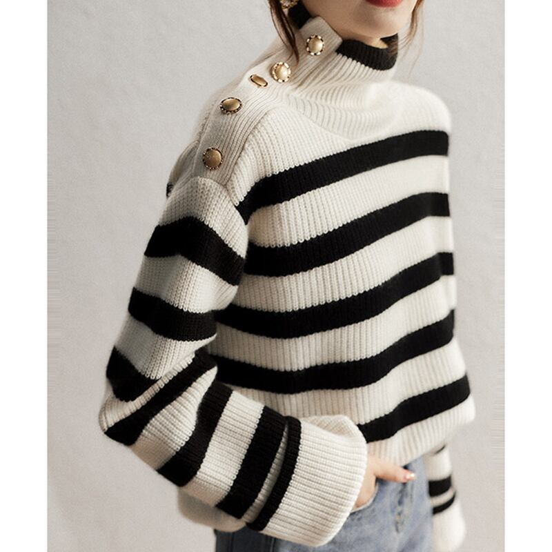 金ボタンボーダーハイネックニット ■商品説明 定番のデザインと着回しのしやすさが魅力のボーダーハイネックニット。 シンプルながらもゴールドボタンがアクセントに。 ボーダーがカジュアルな雰囲気を演出し、様々なスタイリングにマッチします。 ハイネックデザインで首筋を華奢に見せてくれます。 ■カラー ホワイト ブラック ☆インスタで他のアイテムもチェック! https://www.instagram.com/_riglow_official_/ ☆riglowで今人気のアイテムはこれ! https://www.riglow.net/categories/3447320 ☆Shop top pageはこちらから https://www.riglow.net/ ----------------------------------------------------------------------------------- 【お支払い方法について】 ・クレジットカード決済(手数料がかからずオススメです。) ・キャリア決済(docomo/au/Softbank/Y!mobile 手数料300円) ・あと払い(PayIDに登録が必要です。手数料350円) ※お支払い方法は時期によって変更になる可能性がございます。 【お届けについて】 riglowではお客様からご注文をいただき、1点ずつ取り寄せさせていただいております。 そのためご注文(ご入金)いただいてから10日〜3週間前後で発送致します。ご了承ください。 【注意事項】 ・タイミングによっては 商品在庫切れにより 注文キャンセルとさせていただくこともございますので、予めご了承くださいませ。 ・こちらは輸入品となります。日本製とは検品基準が異なる為、 新品未使用品でもごくわずかな汚れや傷がある場合もございます。 ・商品の色味は、お手持ちのスマートフォンの画面によって実物と若干異なる場合がございます。 ・イメージ違いやサイズ交換等、お客さまご都合による交換、返品は対応出来かねます。ご了承ください。 ※こちらに重要事項を詳しく記載しております。ご購入前にこちらをお読みください。 https://www.riglow.net/about