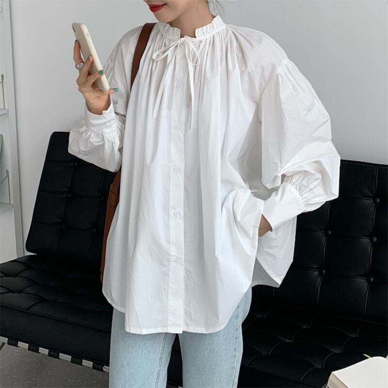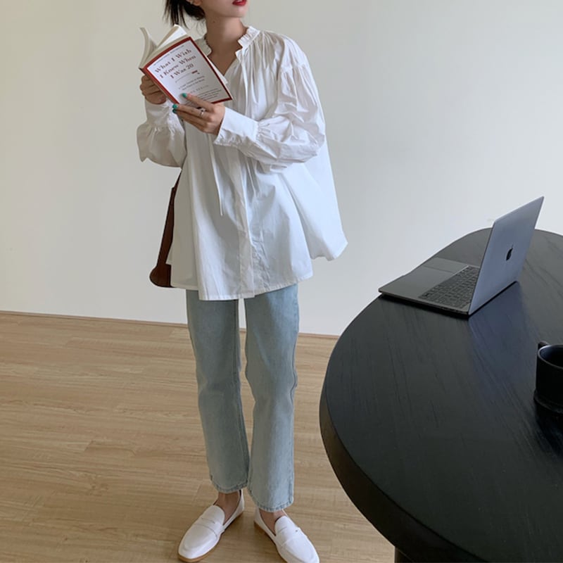 程よくゆったりしたシルエットと、ボリュームスリーブで甘くなりすぎない大人上品な印象に。