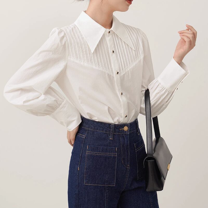 女性らしさを引き立ててくれる一枚で、ベストやカーディガン、ジャケットなどと組み合わせれば季節長く楽しむことができるのも魅力ポイントです。